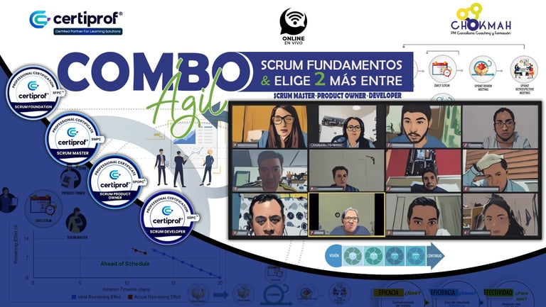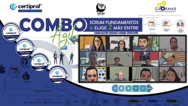 3 Certificaciones Internacionales a elegir: Scrum fundamentos y Scrum Master y/o Product Owner y/o Developer.